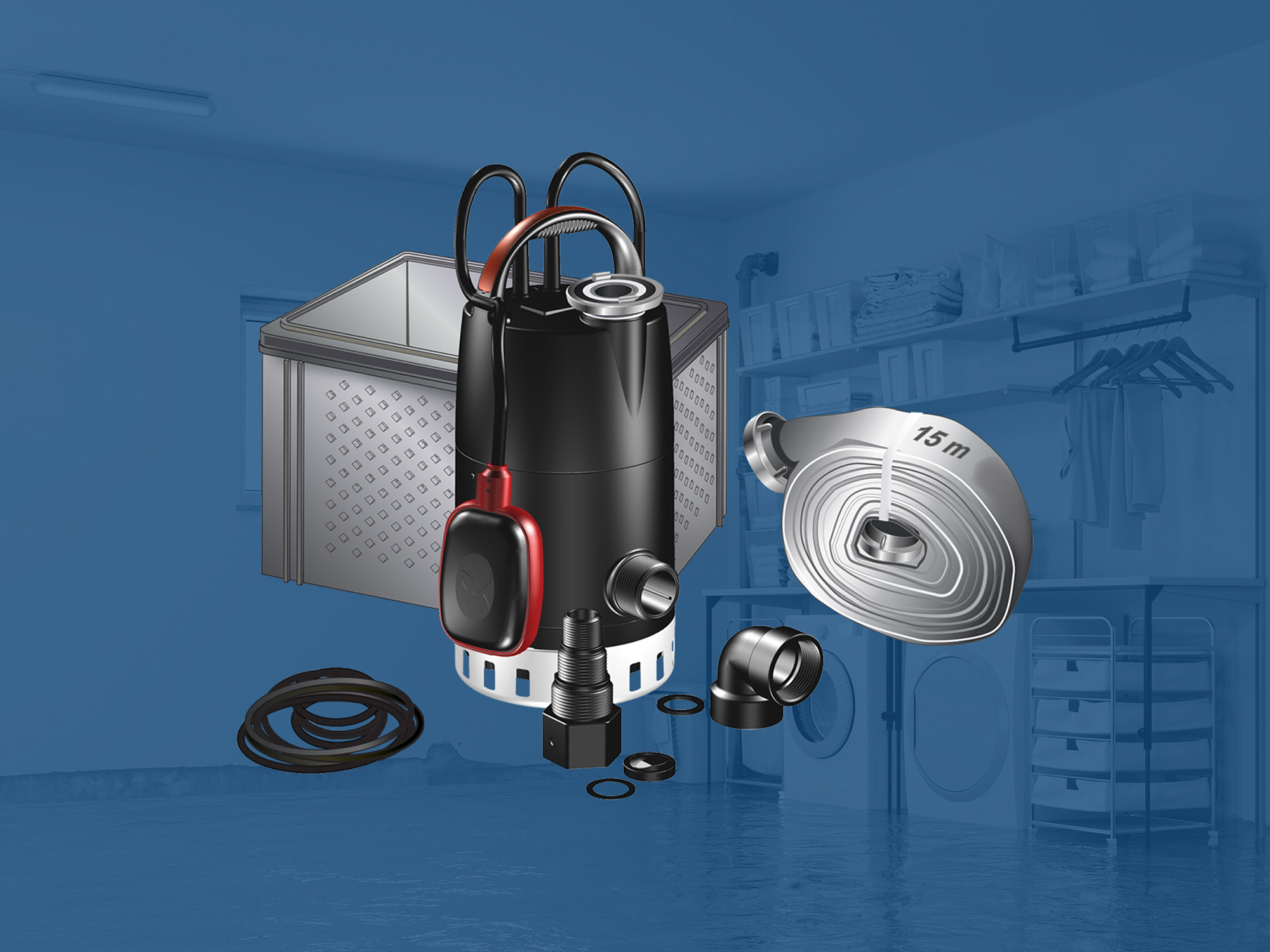 Frühzeitiges und besonnenes Reagieren minimiert größere Sachschäden erheblich: Vorausgesetzt man hat im Notfall die dafür notwendige Ausrüstung griffbereit zur Hand. Mit der MULTIBOX können Sie im Krisenfall schnell und entschlossen reagieren, wenn Ihr Keller unter Wasser steht. Denn sie beinhaltet neben der flachsaugenden Schmutzwasserpumpe UNILIFT CC alle notwendigen Schläuche und Materialien für eine schnelle Kellerentwässerung.